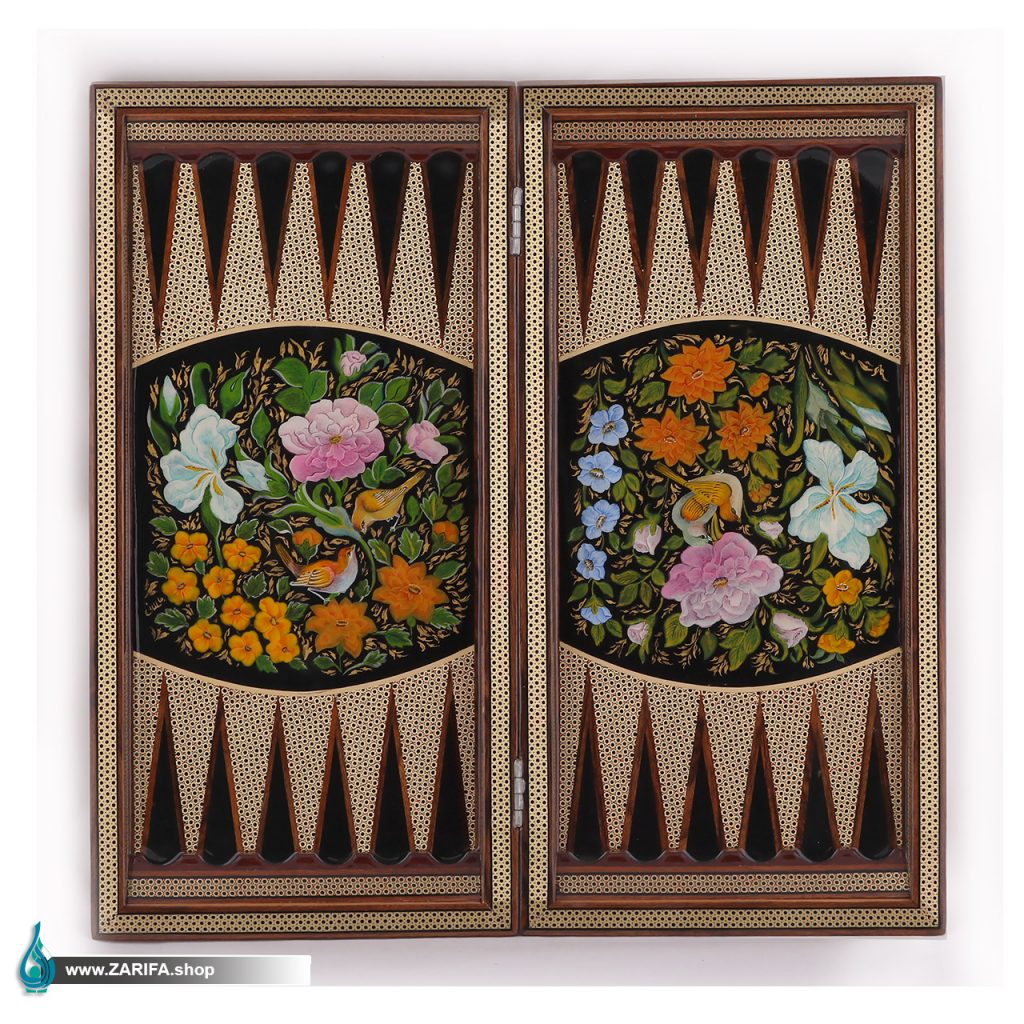 تخته نرد خاتم اعلا با نقاشی گل و مرغ صدف مشکی