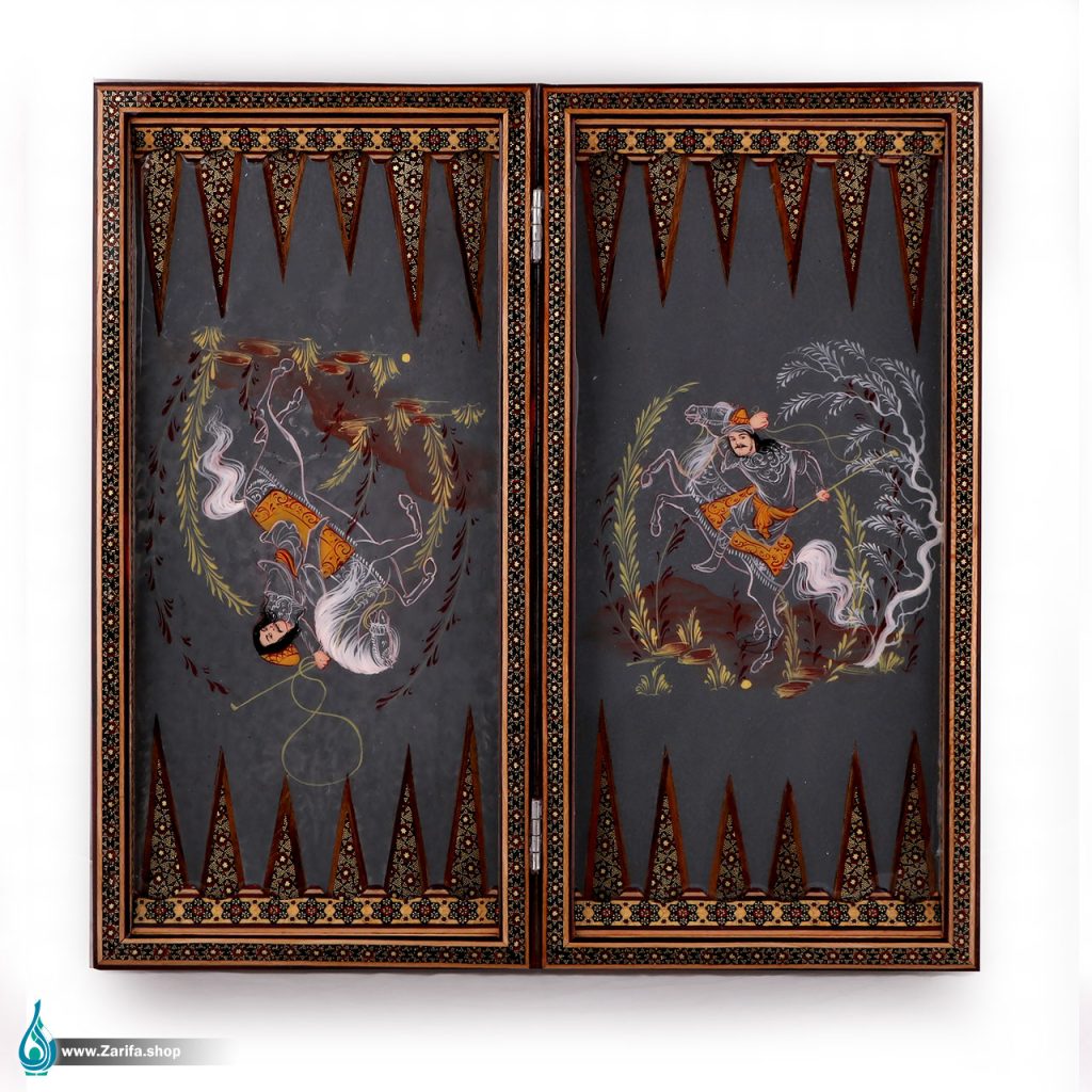 تخته نرد خاتم با نگارگری چوگان سیاه قلم 50 در 50
