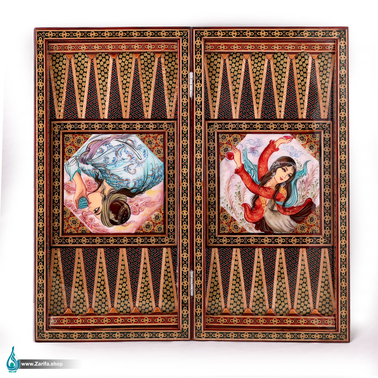 تخته نرد خاتم لب گرد با نقاشی مینیاتور 50 در 50