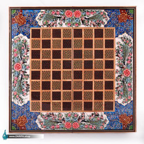 تخته نرد خاتم و چوب راش با نقاشی گل و مرغ 50*50