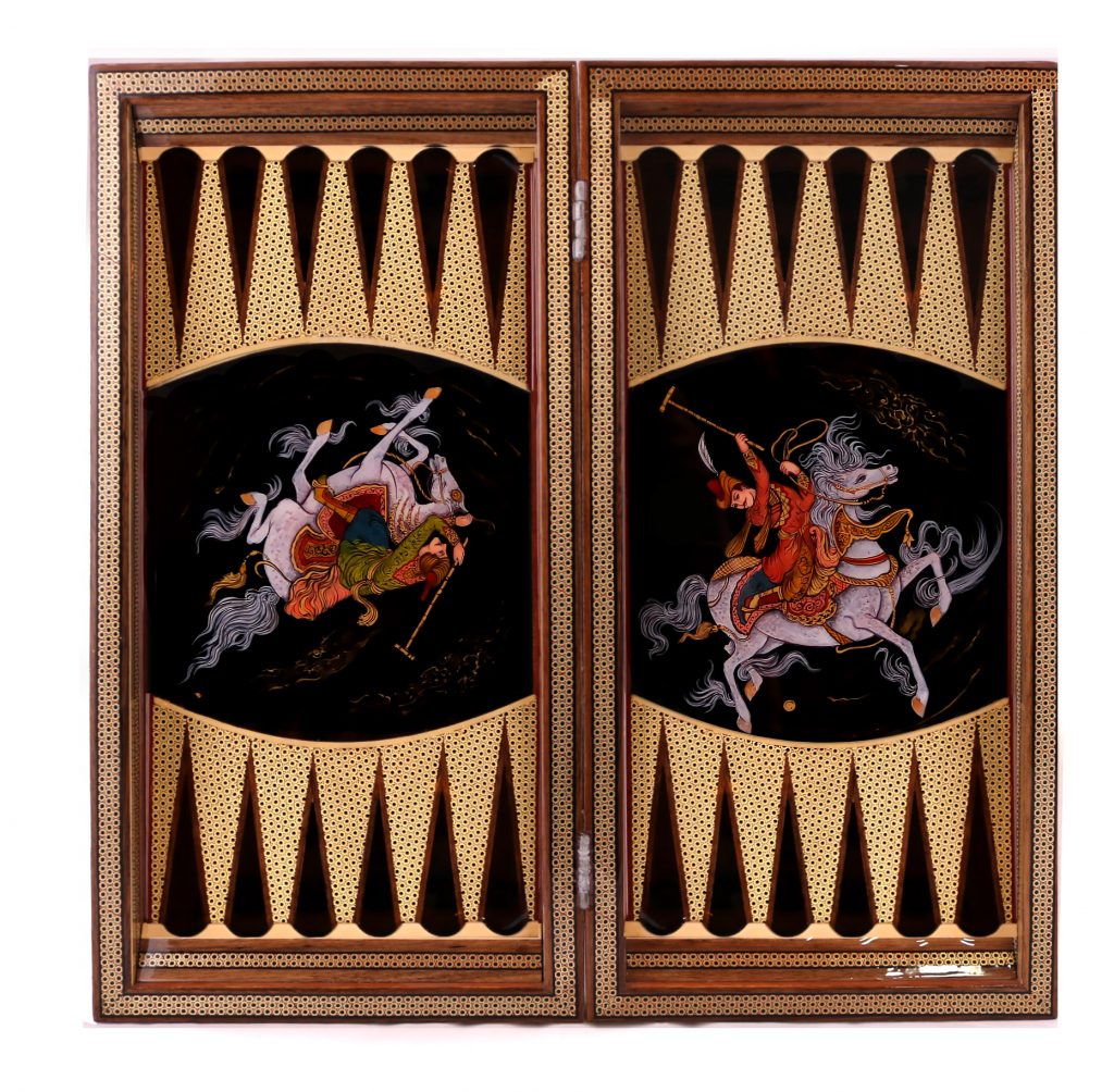 تخته نرد و شطرنج خاتم اعلا و درخشان با نگارگری چوگان