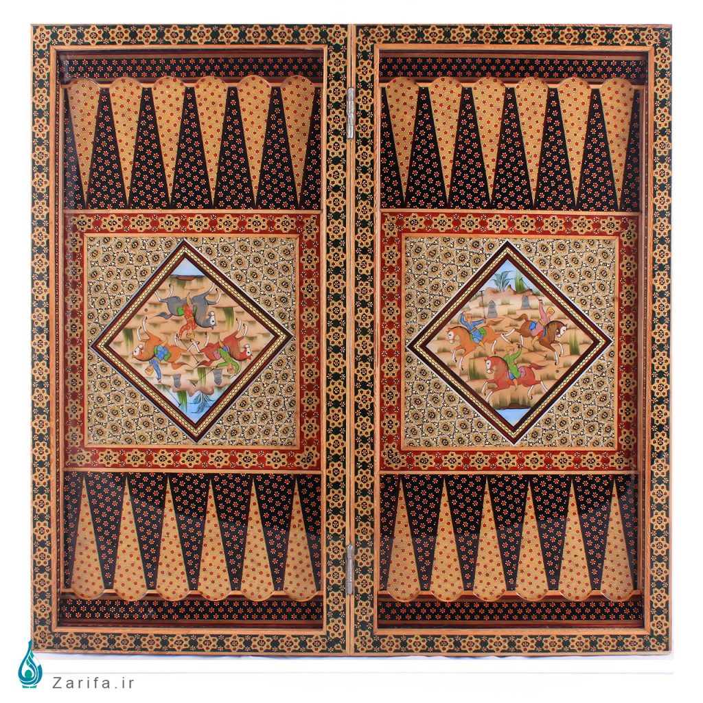 معرفی و اطلاعات کلی تخته نرد و شطرنج خاتم با نگارگری شکار و تذهیب سبز کارگاه کروبی