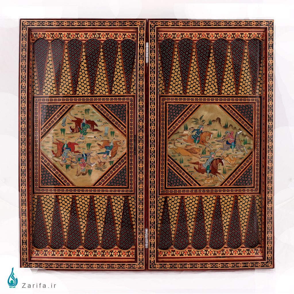 معرفی و اطلاعات کلی تخته نرد و شطرنج خاتم با نگارگری شکار طلایی 50*50