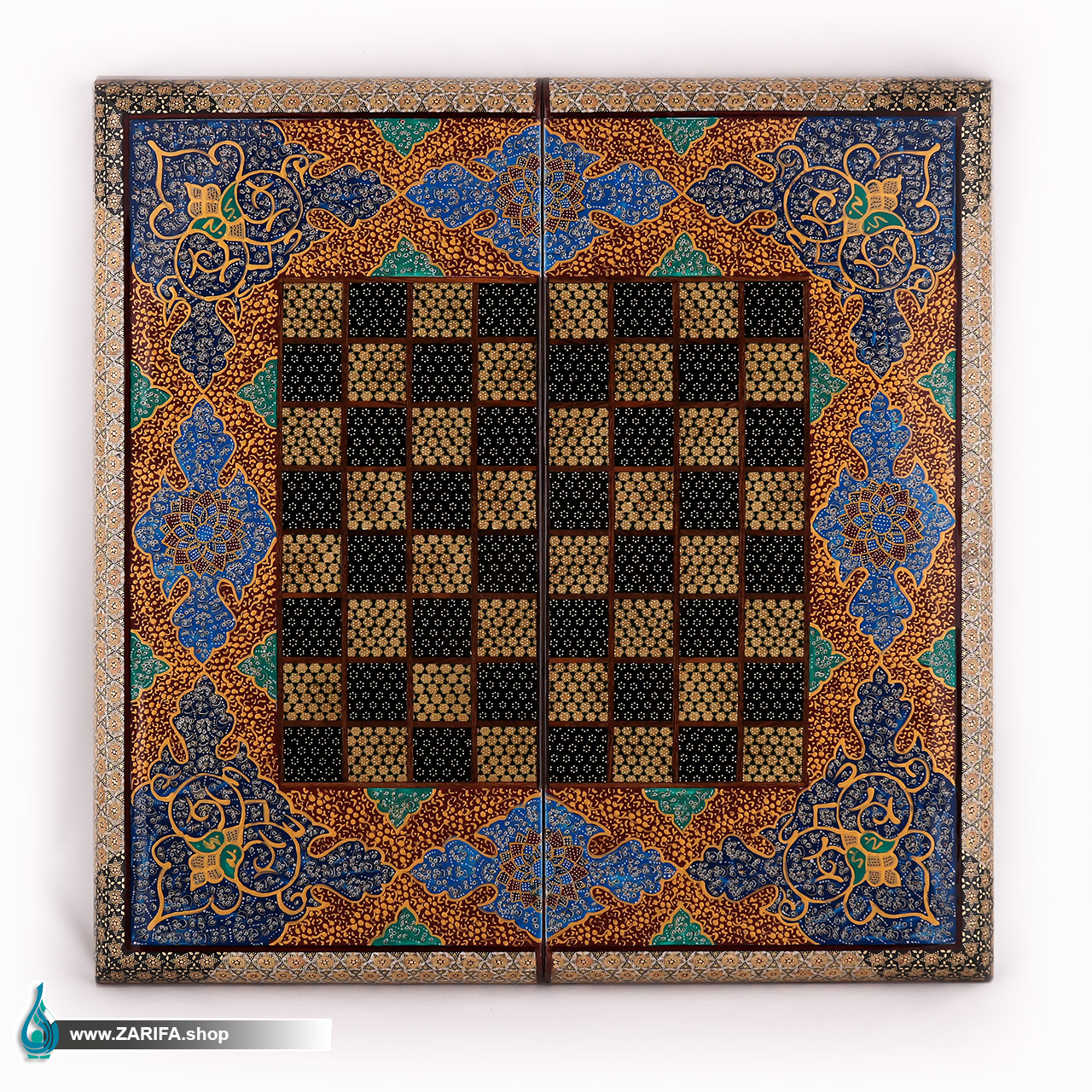 تخته نرد و شطرنج خاتم لب گرد با تذهیب آبی50*50