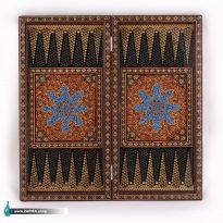 معرفی و اطلاعات کلی تخته نرد و شطرنج خاتم لب گرد با تذهیب آبی50*50