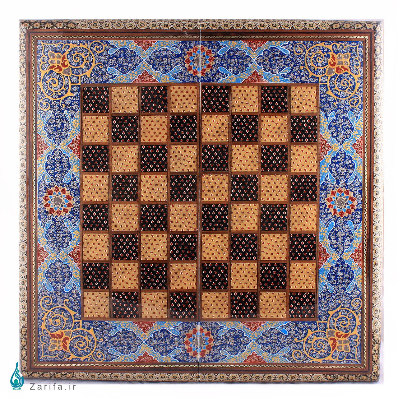 تخته نرد و شطرنج خاتم کروبی با تذهیب آبی و طلایی