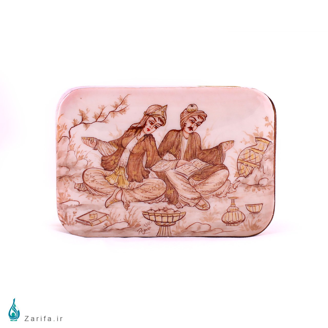 خانم ها معمولا از داشتن طلا و جواهرات لذت می برند. اما نمی توانند تمامی جواهرات را با خود به همراه داشت. در ضمن کادو دادن طلا و جواهرات، گاه حتی گردن آویزها و دست بند های نقره و استیل و سایر زیور آلات به بسته بندی متناسب با خود انها نیاز دارد. چه بهتر که این مهم در جعبه ای از صنایع دستی سرزمین خودمان انجام شود. بر روی جعبه خاتم با نگارگری جام و غزل، نقاشی زیبایی وجود دارد که بسیار استادانه و خوش پرداخت است و می تواند محملی زیبای برای زیور آلات باشد. همچنان که به خودی خود بر روی میز آرایش یا به عنوان جعبه کادو، اثری است زیبا و منحصر به فرد.