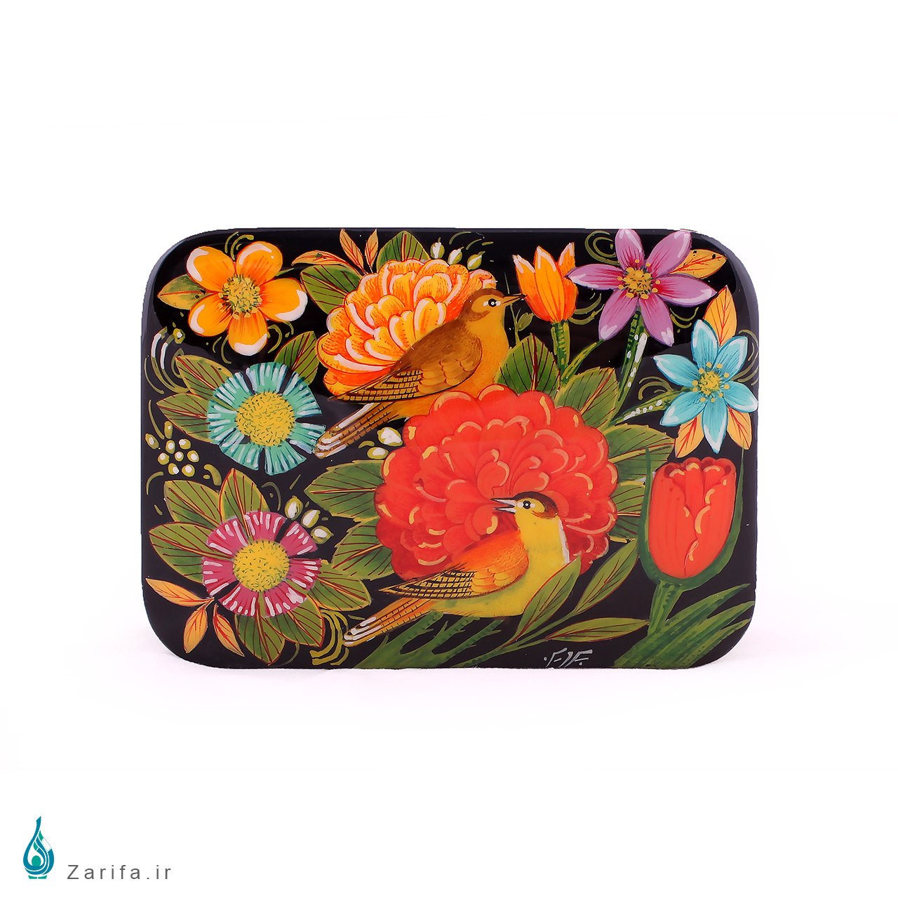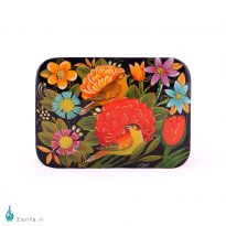 جعبه خاتم با نگارگری گل و مرغ سبز:
