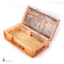 این جعبه که از برش سنگ مرمر با ضخامت 3 میلی متر در کنار هم ساخته شده است از دستگاهی ابداعی که توسط بابایی و شفیعی به ثبت رسیده است به دست می آید. توسط این دستگاه سنگ مرمر به ضخامت 3 میلی متر برش خورده و سپس قطعات آن برای ساخت یک جعبه به هم متصل می شوند. این جعبه ها که هر یک منقش به نقش و قلم یک استاد کار خوش ذوق ایرانی است، قابل استفاده به عنوان جعبه پذیرایی ، مناسب برای قرار دادن بر روی میز یا جایگاه وسایل شخصی است. برای دیدن اطلاعات بیشتر در خصوص جعبه سنگ مرمر به این قسمت مراجعه فرمایید.