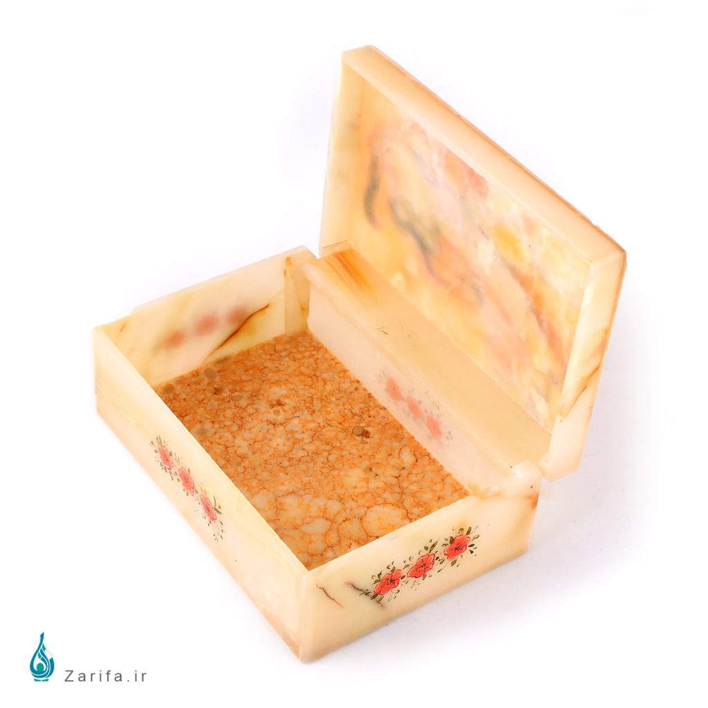 این جعبه که از برش سنگ مرمر با ضخامت 3 میلی متر در کنار هم ساخته شده است از دستگاهی ابداعی که توسط بابایی و شفیعی به ثبت رسیده است به دست می آید. توسط این دستگاه سنگ مرمر به ضخامت 3 میلی متر برش خورده و سپس قطعات آن برای ساخت یک جعبه به هم متصل می شوند. این جعبه ها که هر یک منقش به نقش و قلم یک استاد کار خوش ذوق ایرانی است ،قابل استفاده به عنوان جعبه پذیرایی ، مناسب برای قرار دادن بر روی میز یا جایگاه وسایل شخصی است.