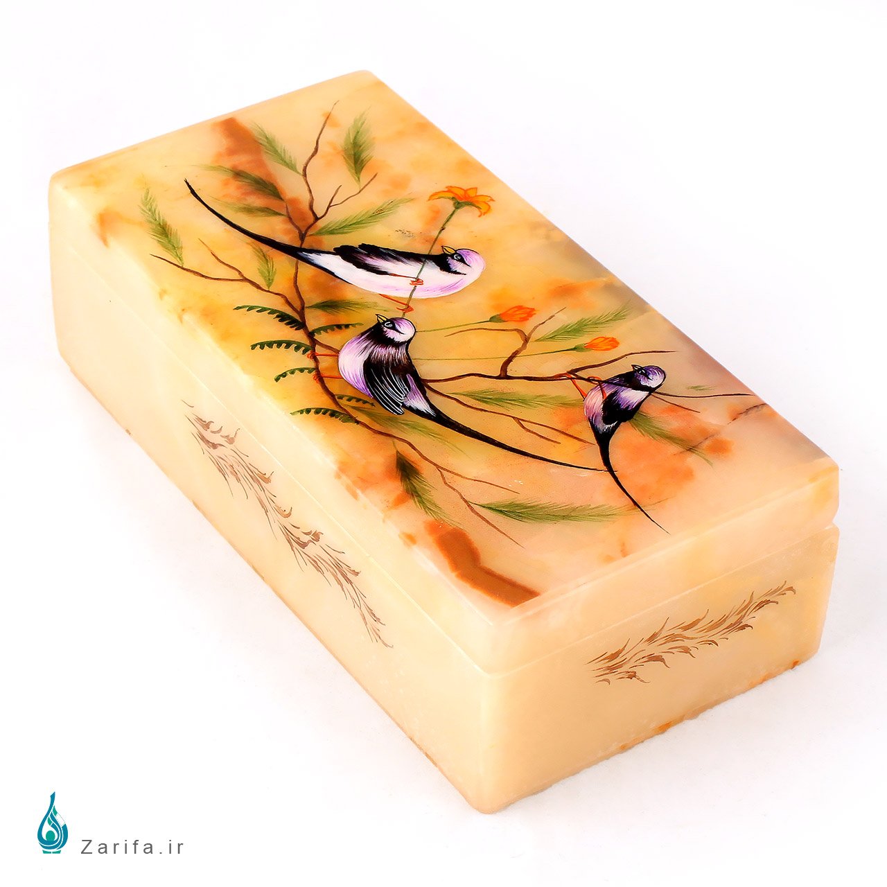 معرفی و اطلاعات کلی جعبه سنگ مرمر با نگارگری پرنده فانیان سایز 10*20