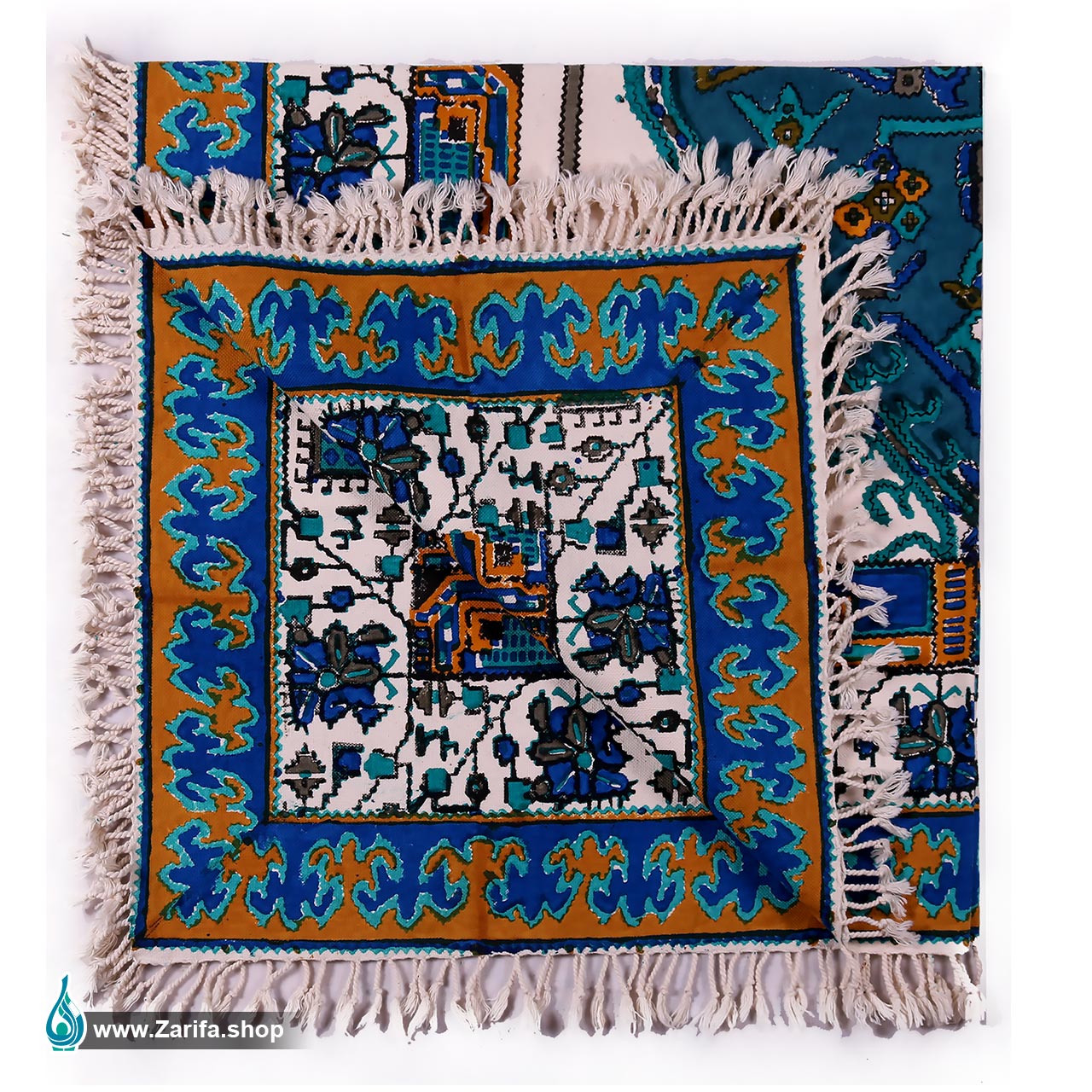 معرفی و اطلاعات کلی سفره قلمکار اعلا طرح گلیم آبی سایز100*100