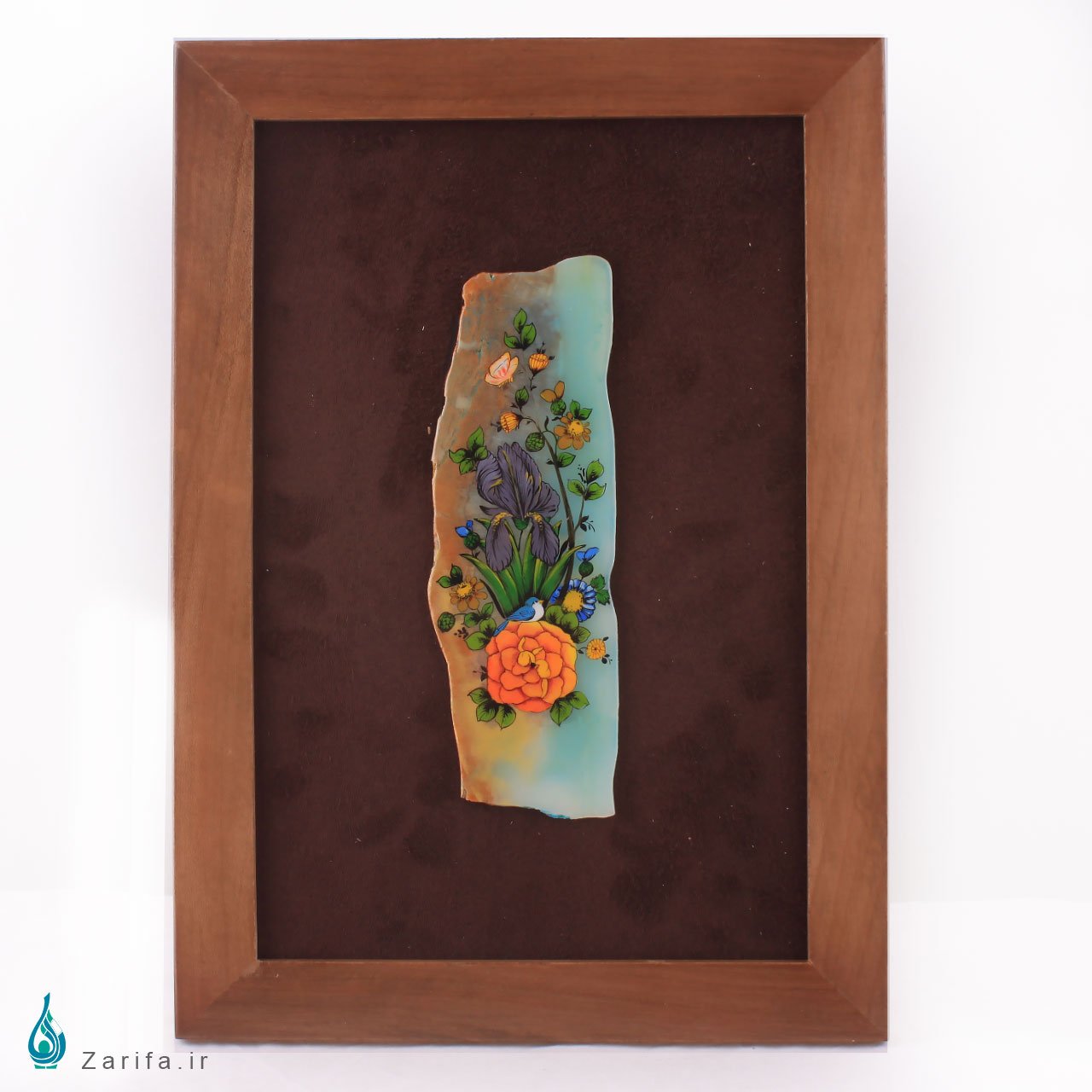 معرفی و اطلاعات کلی قاب سنگ مرمر با نگارگری گل و مرغ اسکندری سایز:20*30