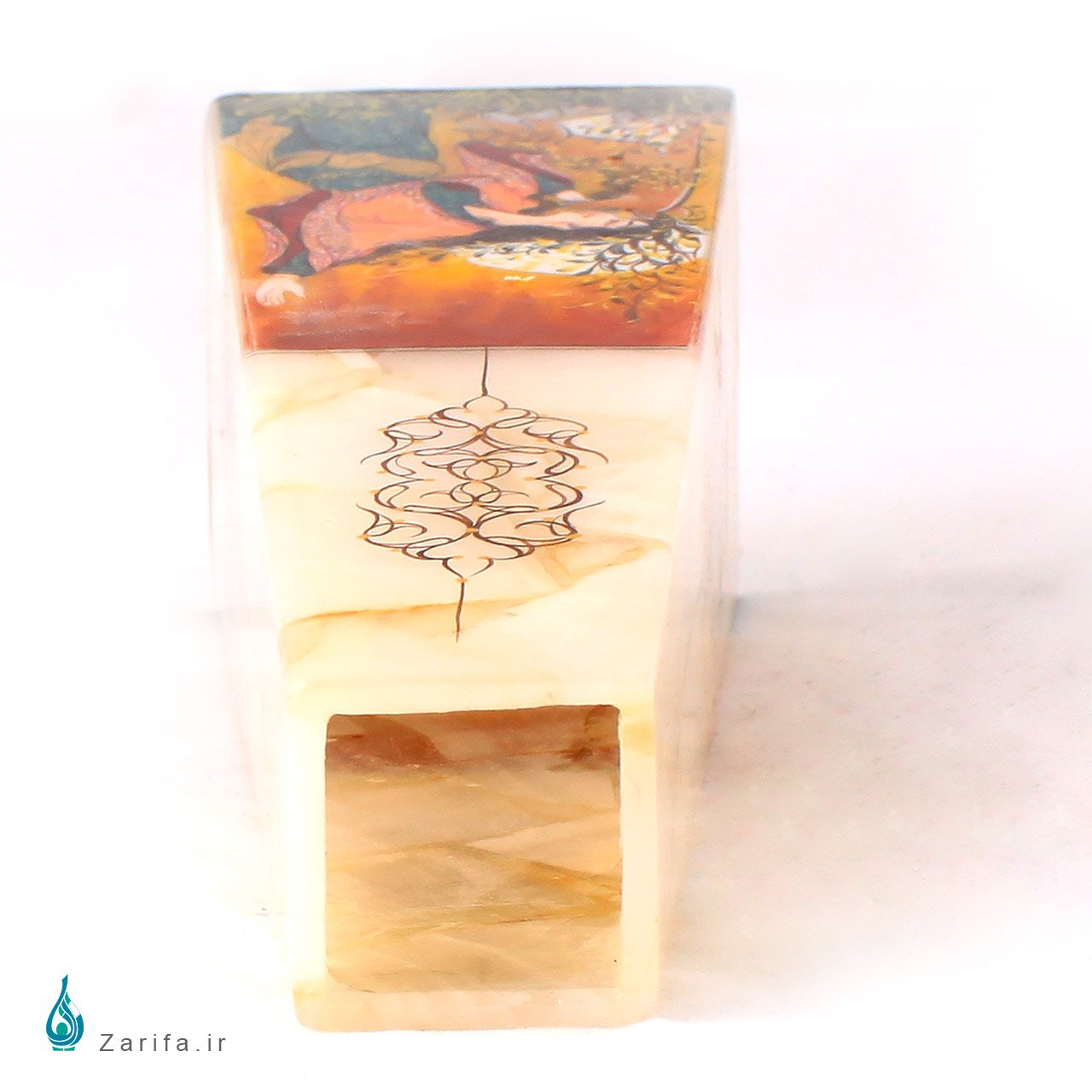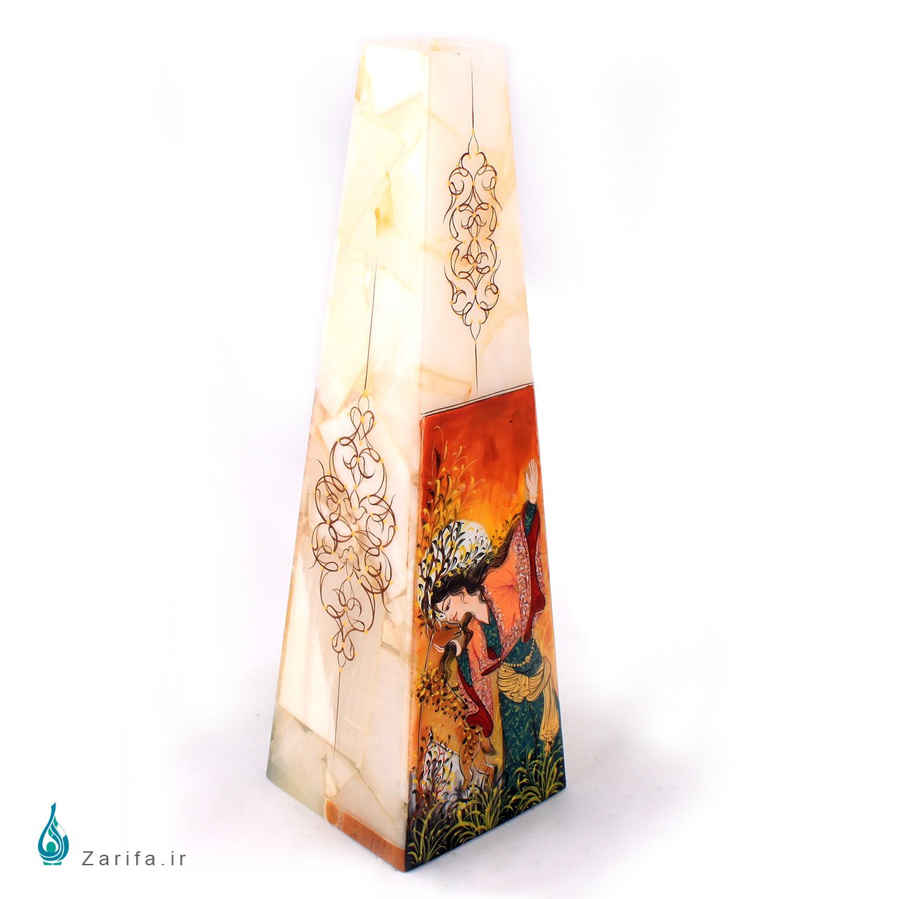 گلدان هرمی سنگ مرمر بابایی با نگارگری معاصر زمانی